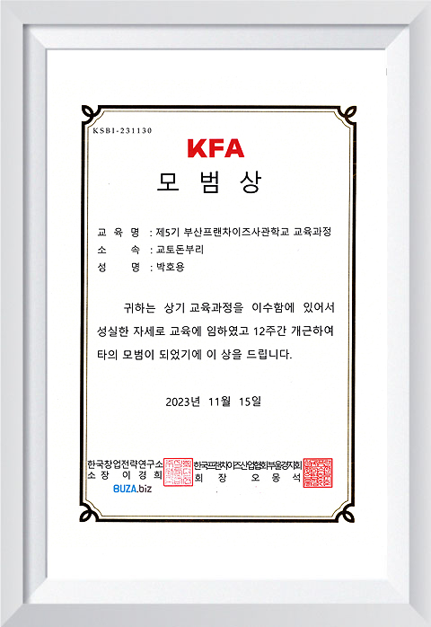 모범상 KFA 부울경프랜차이즈산업협회