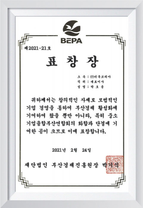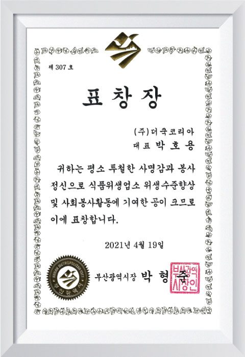 2021 부산광역시장 표창장
