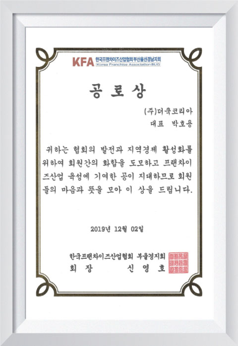2019 한국프랜차이즈산업협회 공로상