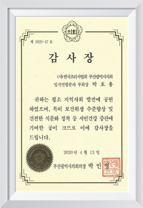 2020 부산광역시의회의장 감사장
