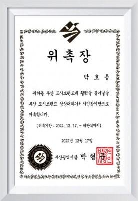2022 부산광역시 도시브랜드 위촉장